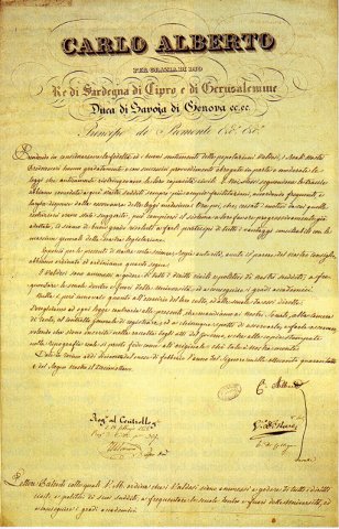 Date in Torino, addì diciassette del mese di febbraio, l'anno del Signore mille ottocento quarantotto e del Regno Nostro il Decimottavo.